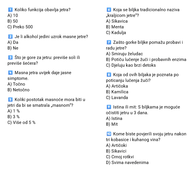 Provjerite svoje odgovore na kraju članka i saznajte kako je prošla vaša jetra na Adventu.