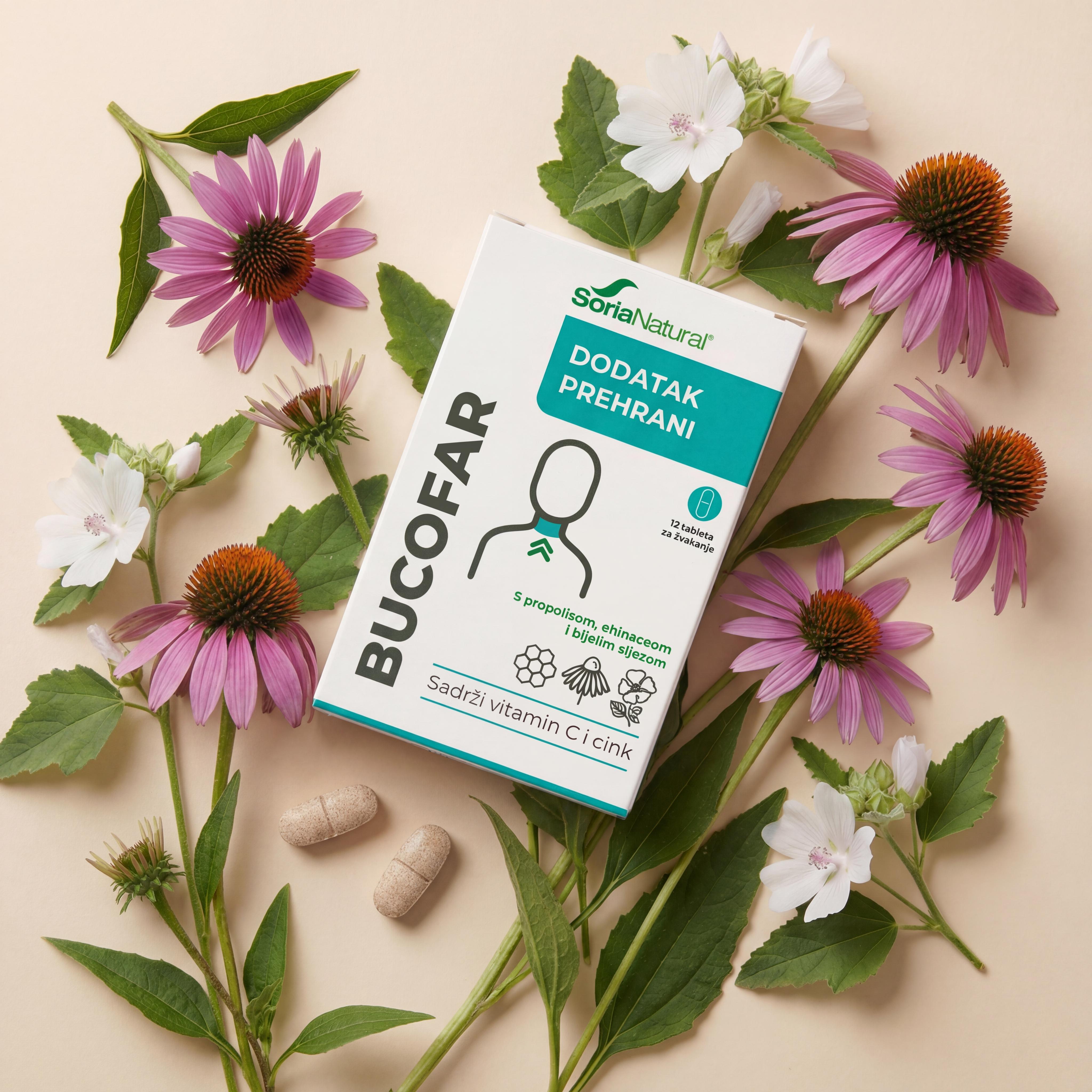 Dodatak prehrani za odrasle sa sladilima na bazi propolisa, ehinaceje, sljeza, vitamina C i cinka.