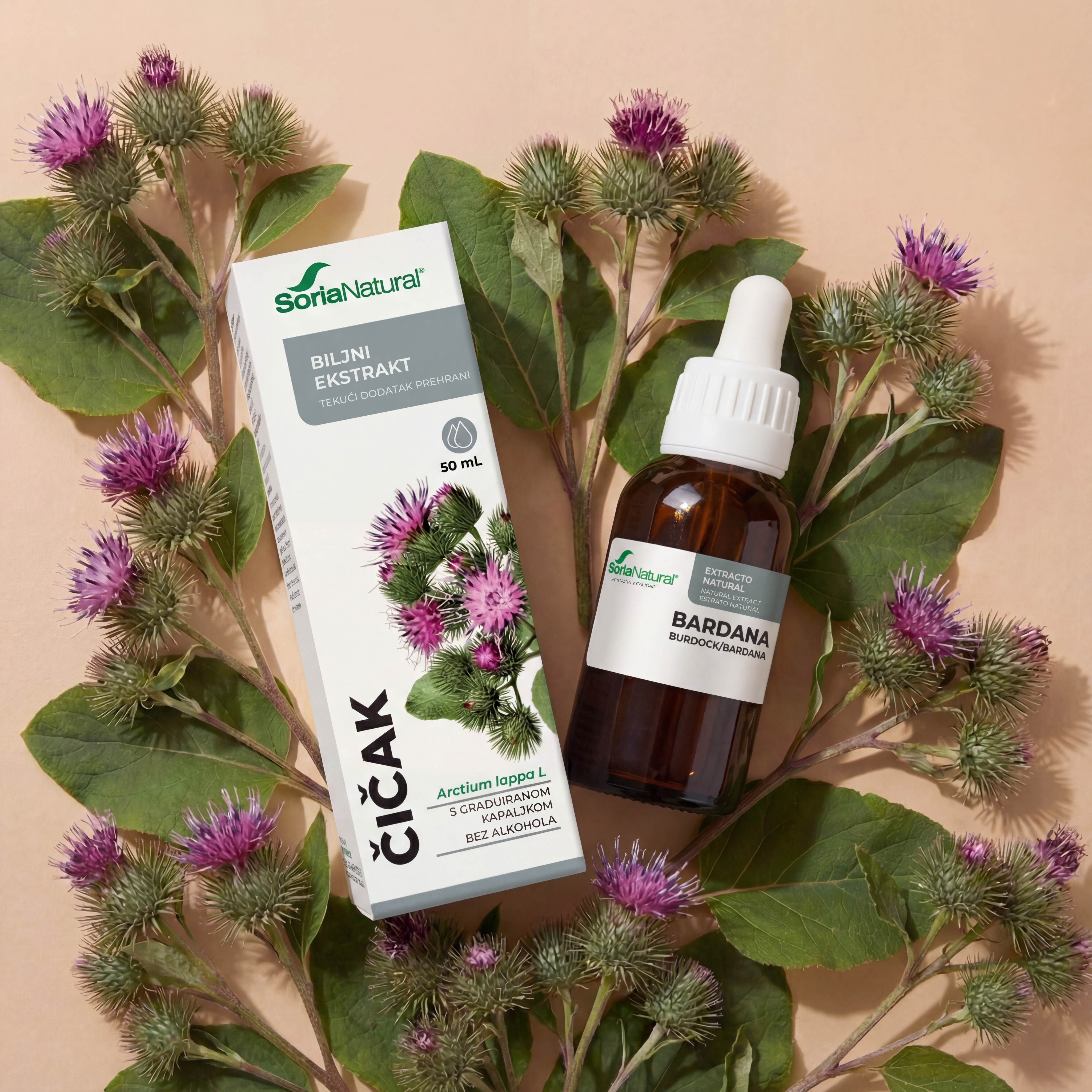 Tekući dodatak prehrani s liofiliziranim ekstraktom korijena čička (Arctium lappa L.) u biljnom glicerolu.