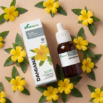 Tekući dodatak prehrani s liofiliziranim ekstraktom lista damiane (Turnera diffusa Willd L.) u biljnom glicerolu.