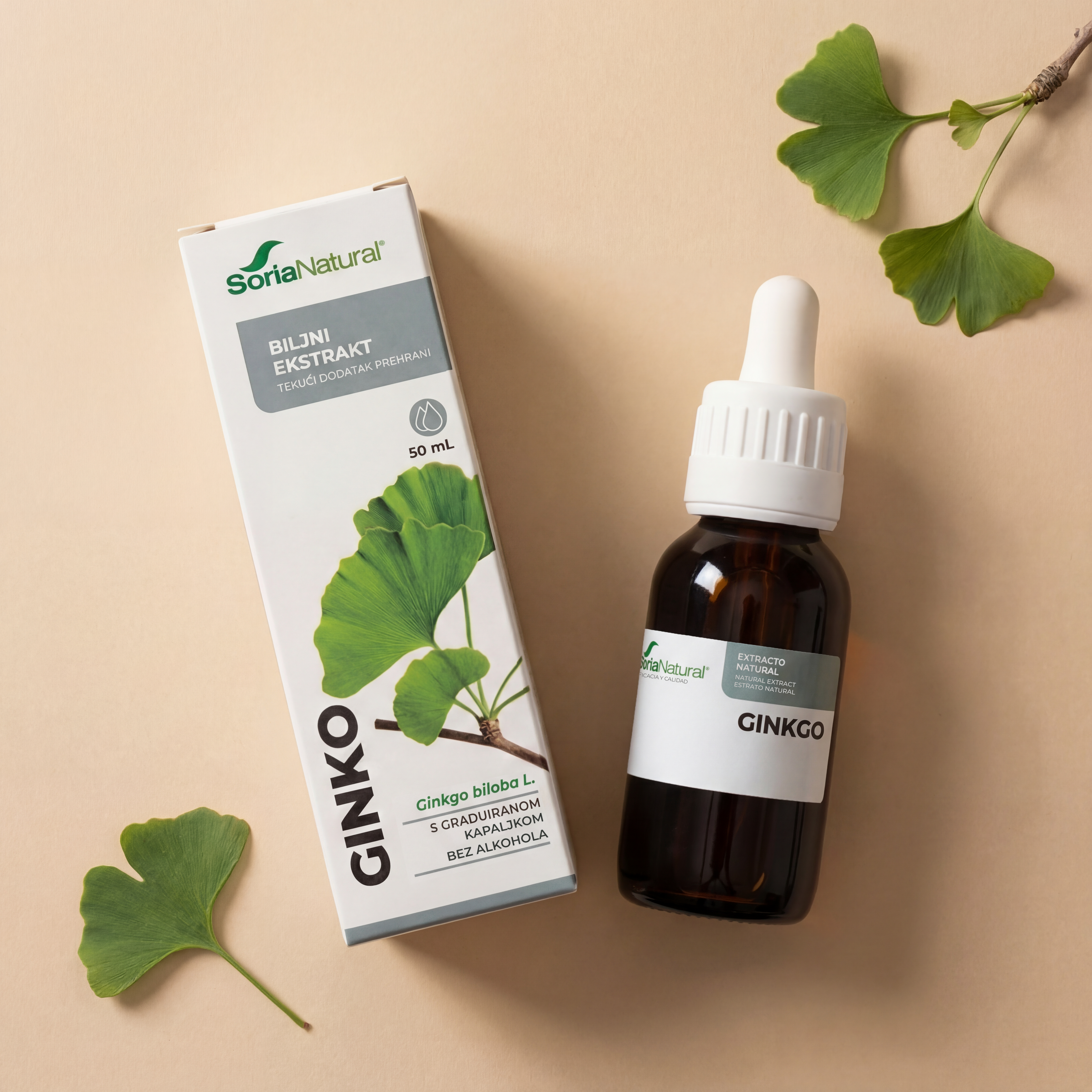 Tekući dodatak prehrani s liofiliziranim ekstraktom lista ginka (Ginkgo biloba L.) u biljnom glicerolu.