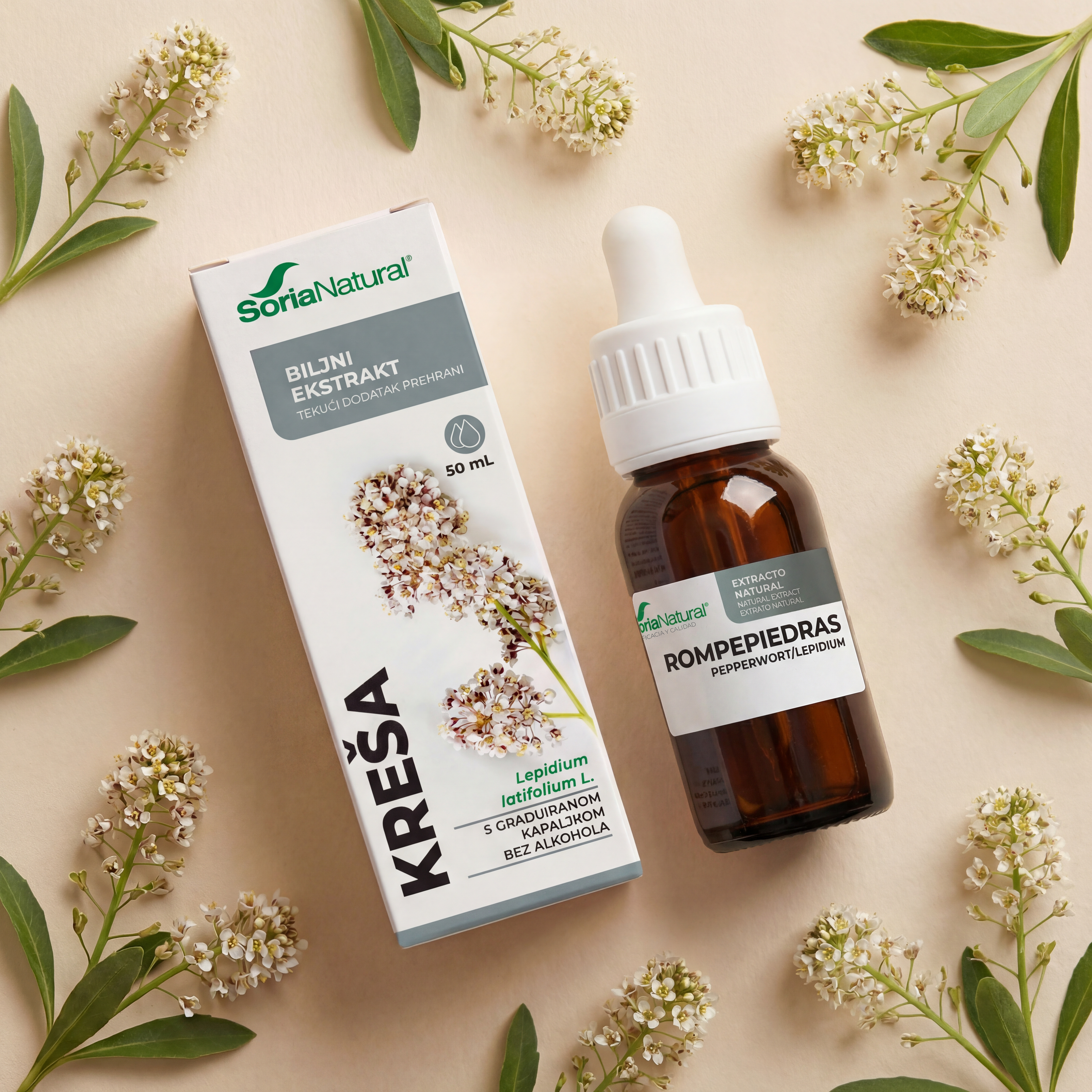 Tekući dodatak prehrani s liofilizirani ekstrakt zeleni kreše/grbice (Lepidium latifolium L.) u biljnom glicerolu.