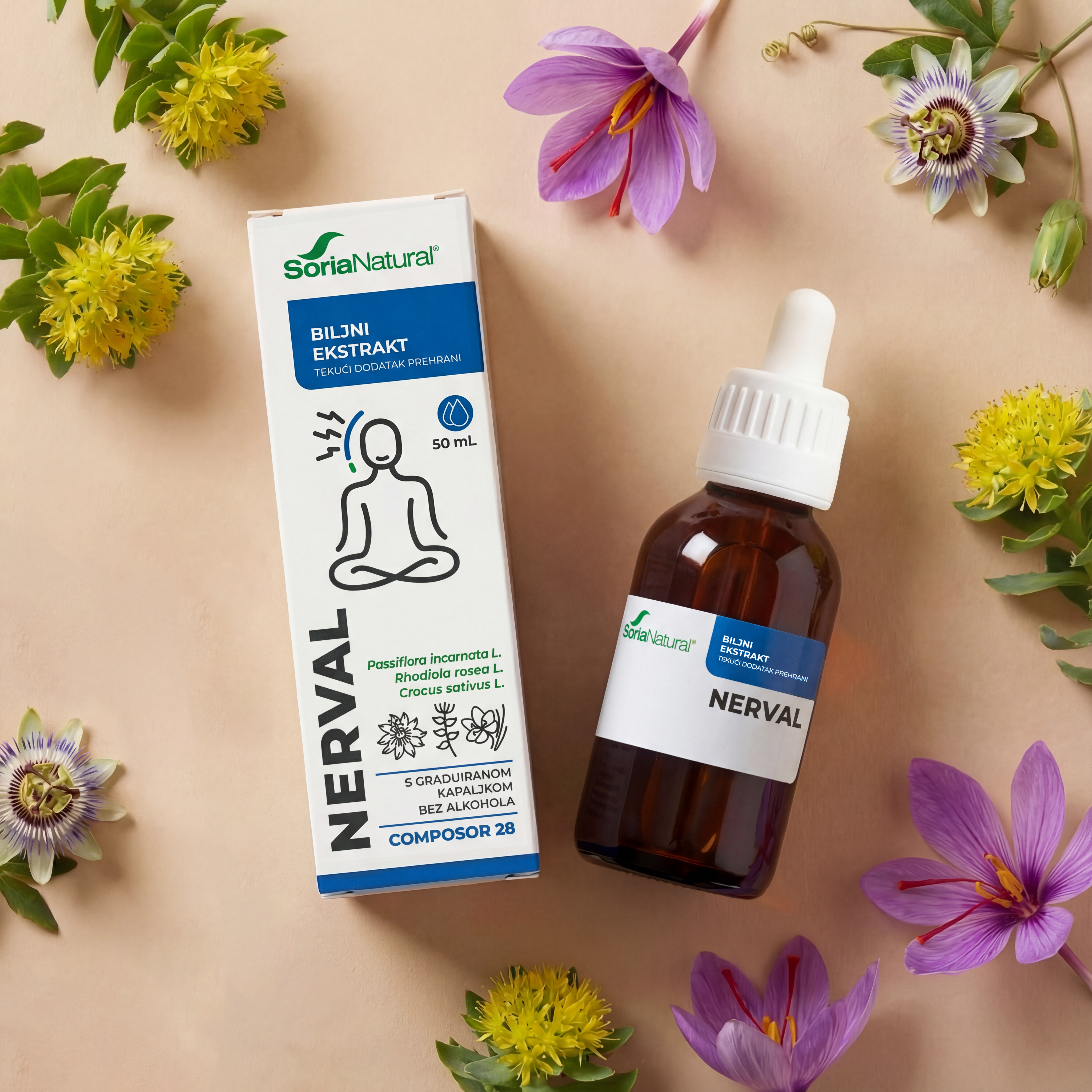 Tekući dodatak prehrani na bazi pasiflore (Passiflora incarnata L.), crvene rodiole (Rhodiola rosea L.), Affron® šafrana (Crocus sativus L.), GABA-e, vitamina B6 i folne kiseline u biljnom glicerolu.