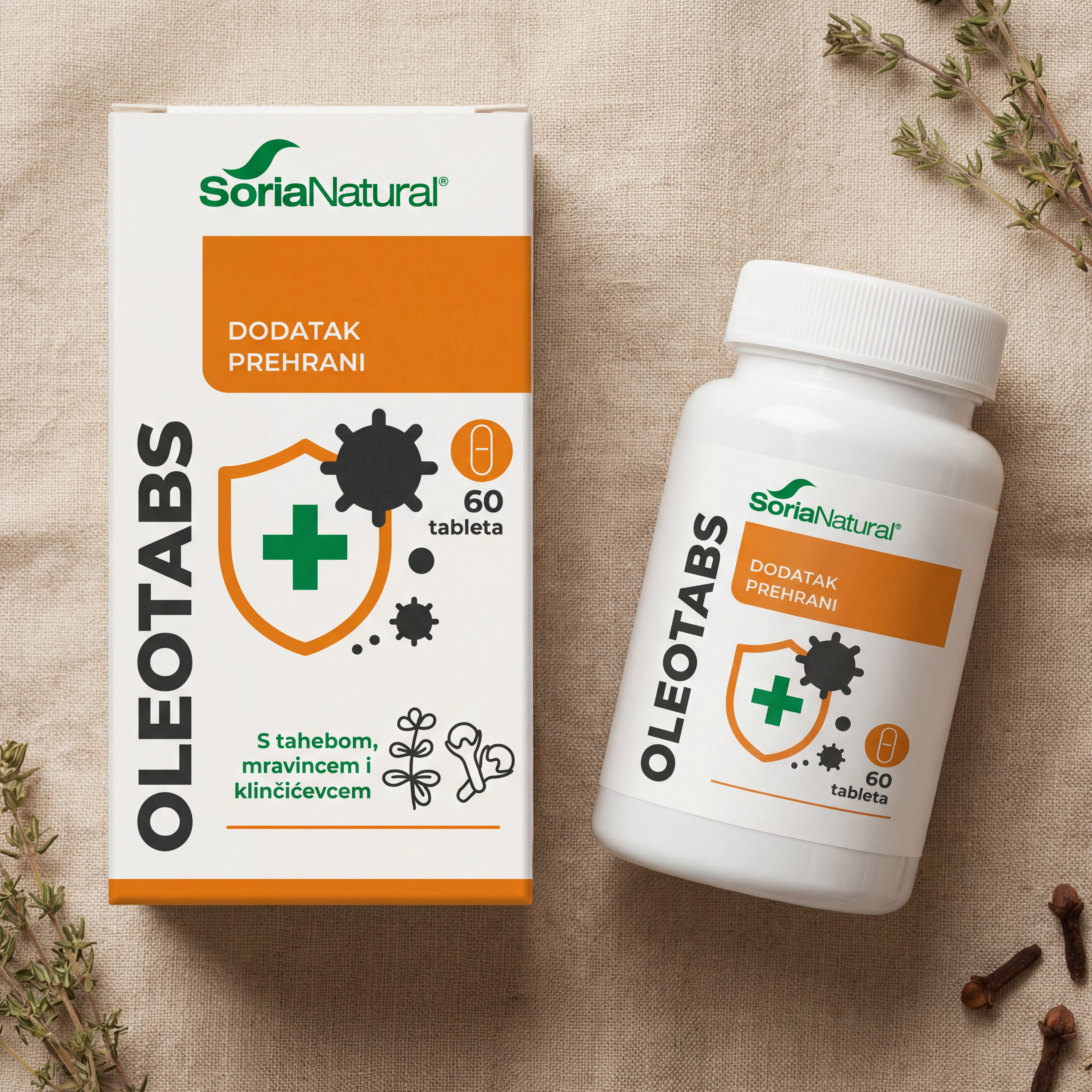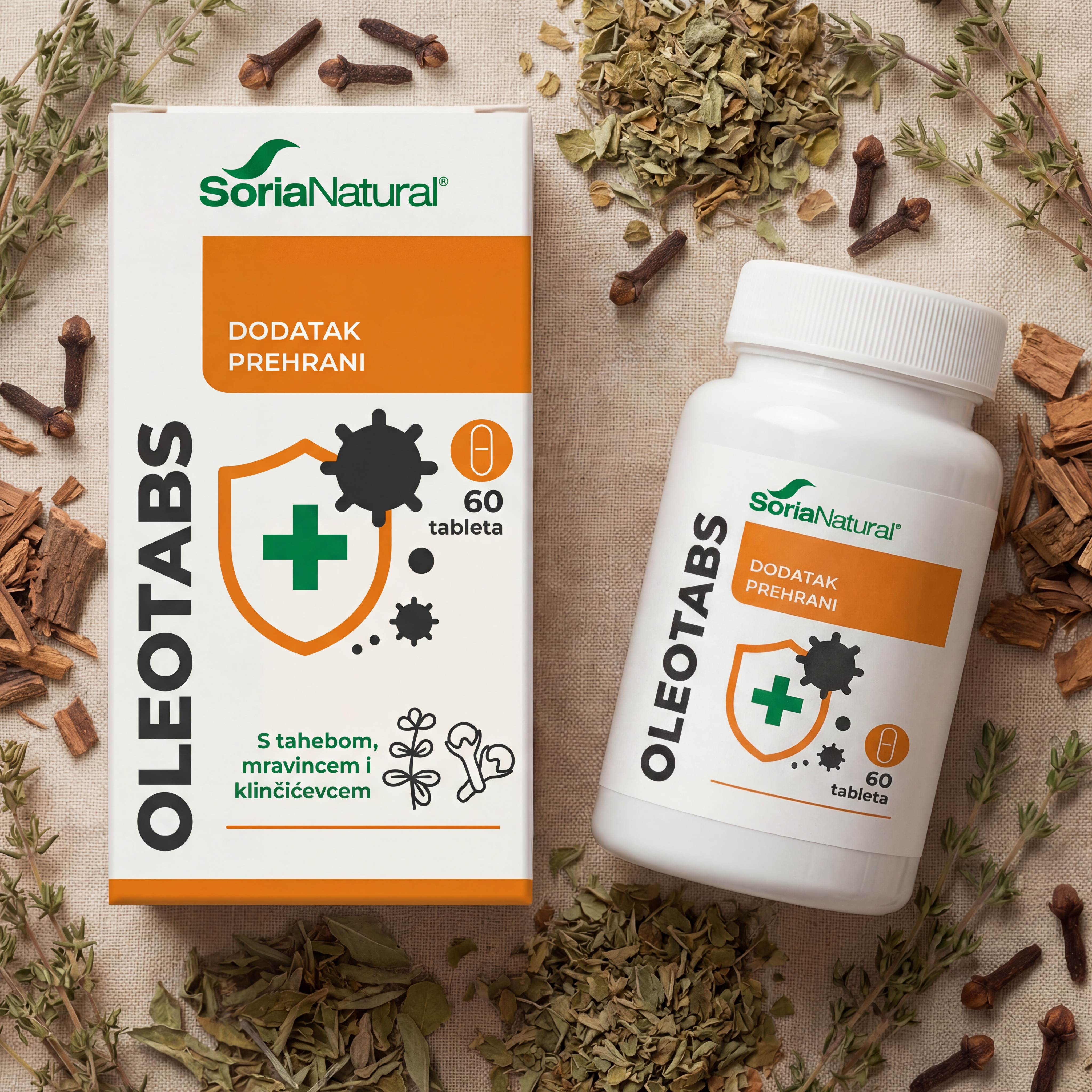 Dodatak prehrani u obliku gastrorezistentnih tableta s tahebom (Tabebuia impetiginosa Standley), mravincem (Origanum vulgare L.) i klinčićevcem (Eugenia caryophyllata Thunb).