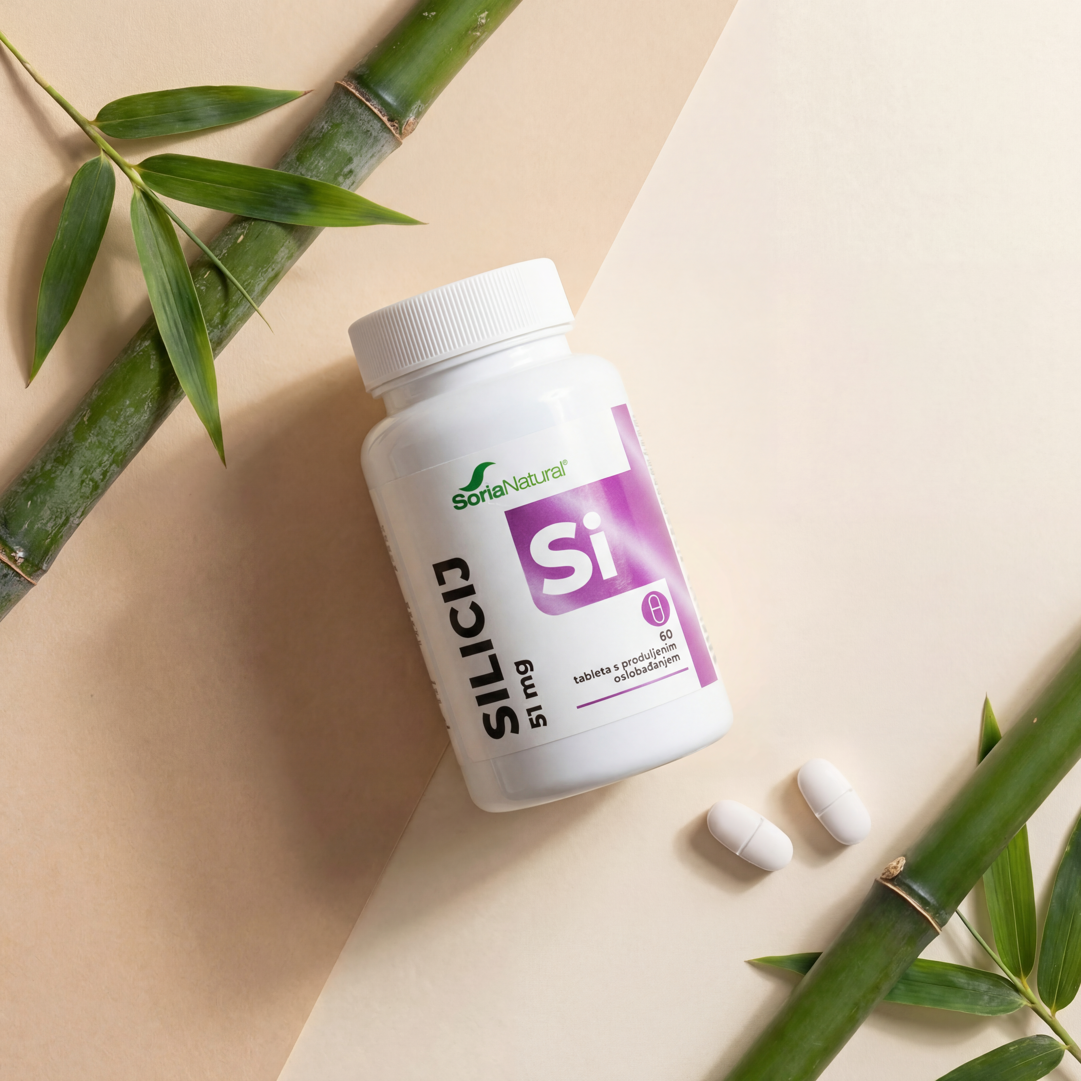 Dodatak prehrani u obliku tableta s produljenim oslobađanjem koje sadrže silicij izoliran iz zeleni bambusa Bambusa arundinacea (Retz.).